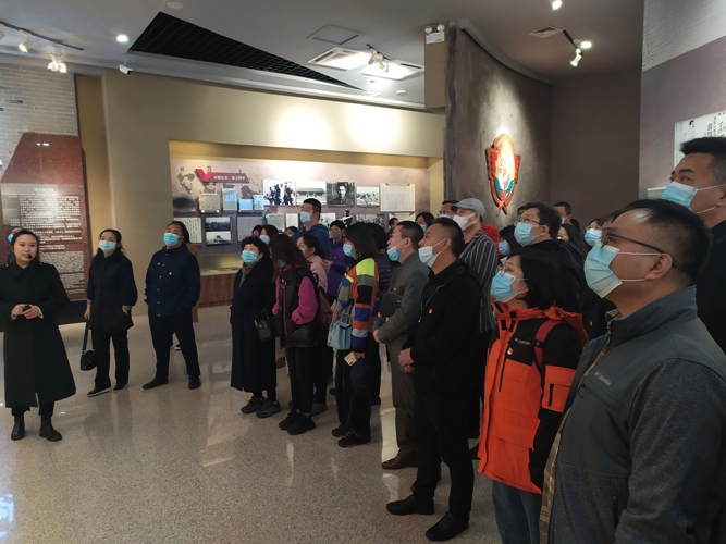 在參觀四平戰(zhàn)役紀念館前,首先進行的是“重溫入黨誓詞”,由黨委辦公室副主任于海媛領宣入黨誓詞。