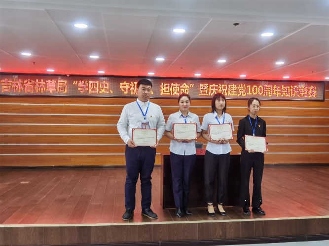 在期間開展的吉林省林草局“學四史、守初心、擔使命”暨慶祝建黨100周年知識競賽中,張楊、陳玲、張超凡三名選手代表我院參賽,榮獲二等獎,張超凡榮獲“個人優(yōu)秀獎”,繼馮博同志網(wǎng)絡知識競賽預賽第一名之后,又為我院爭得了榮譽。