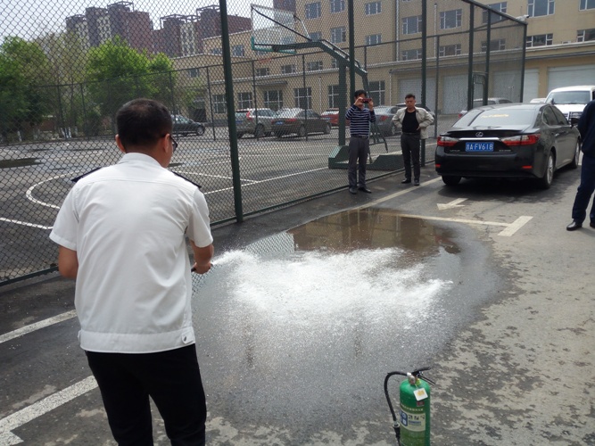 會(huì)議結(jié)束后,院滅火隊(duì)成員在陳野教官的指導(dǎo)下,進(jìn)行了滅火器現(xiàn)場(chǎng)使用演練。(董曉剛)