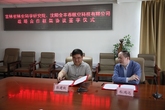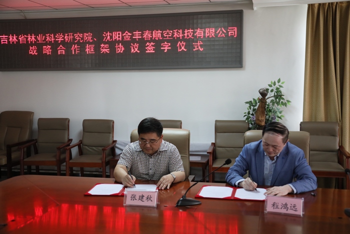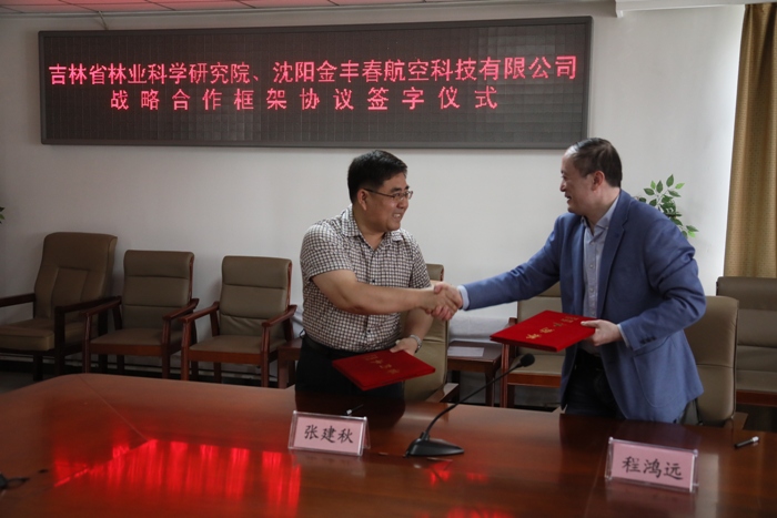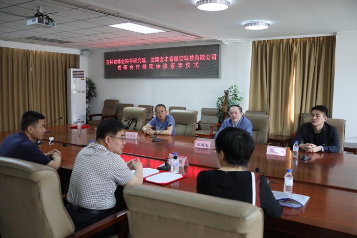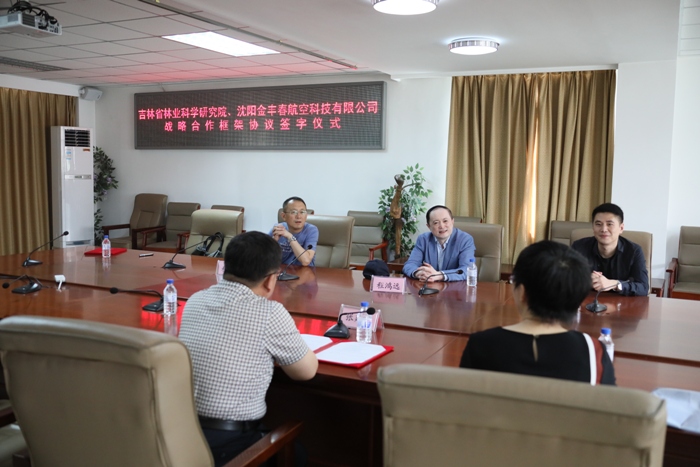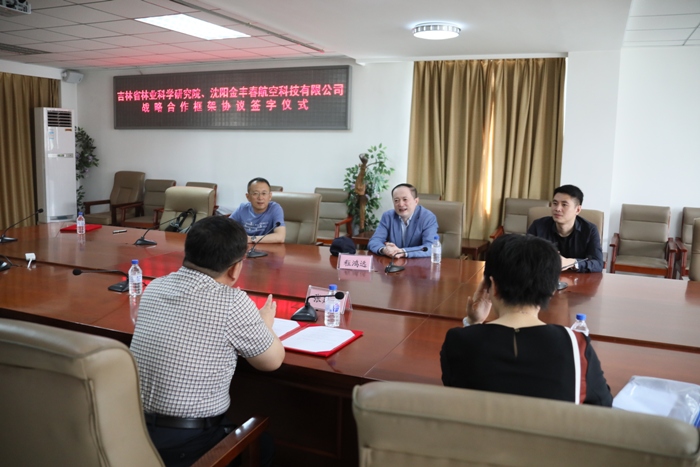 2018年6月7日上午,吉林省林業(yè)科學(xué)研究院與沈陽金豐春航空科技有限公司戰(zhàn)略合作框架協(xié)議簽字儀式在我院3樓會(huì)議室舉行。