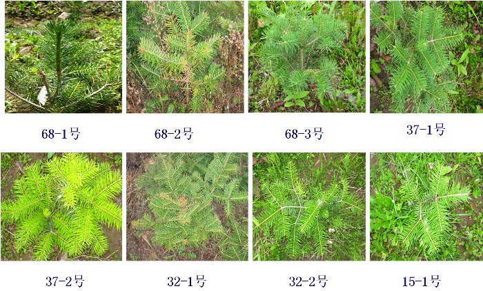 1.選出苗期生長較快且抗病能力較強的優(yōu)良家系12個,選出493株超級苗;