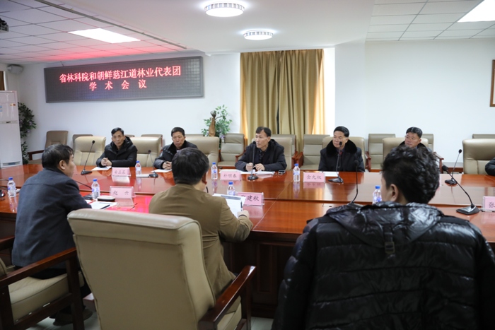 應(yīng)我省邀請(qǐng),12月10日至14日,以朝鮮慈江道貿(mào)易管理局課長(zhǎng)樸明春為團(tuán)長(zhǎng)的朝鮮慈江道林業(yè)代表團(tuán)一行5人來(lái)我院訪問(wèn)交流。省林業(yè)和草原局科技產(chǎn)業(yè)處處長(zhǎng)譚國(guó)慶、省外辦亞洲處副處長(zhǎng)王一龍、我院張建秋院長(zhǎng)、趙云副院長(zhǎng)以及院科研處、辦公室和部分科研人員參加了交流活動(dòng)。