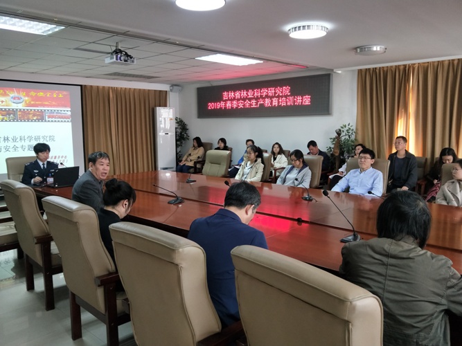 2019年4月16日上午9時,在3樓會議室舉辦了“吉林省林科院2019年春季安全生產(chǎn)教育培訓(xùn)講座”,邀請吉林省安家防火知識服務(wù)中心于同森主任主講,副院長趙云主持會議。