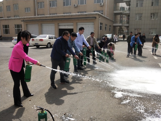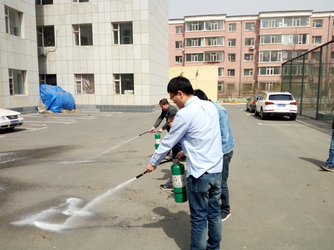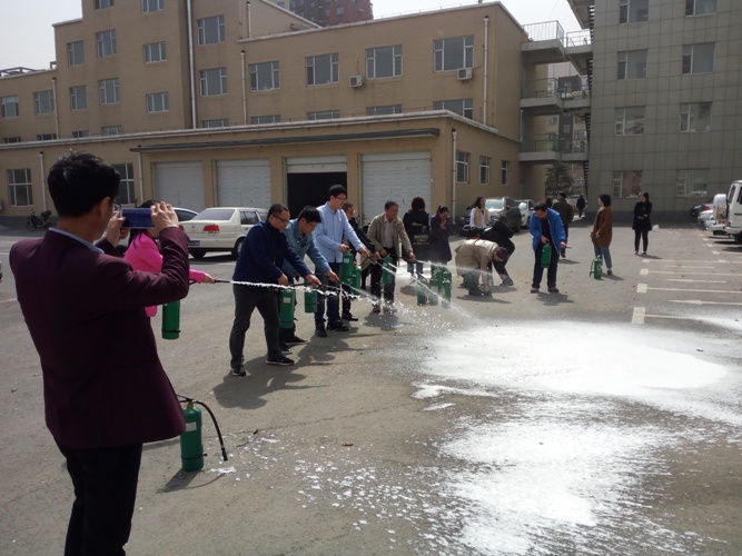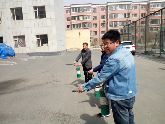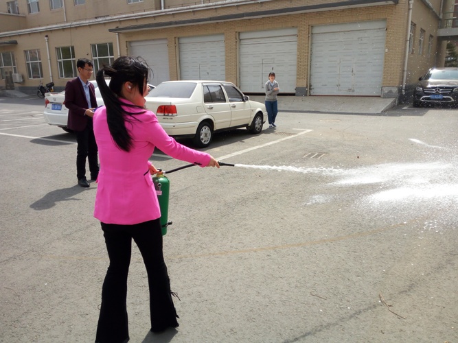 講座結(jié)束后,參加講座的人員在于同森的指導(dǎo)下,進(jìn)行了水基滅火器現(xiàn)場使用演練。